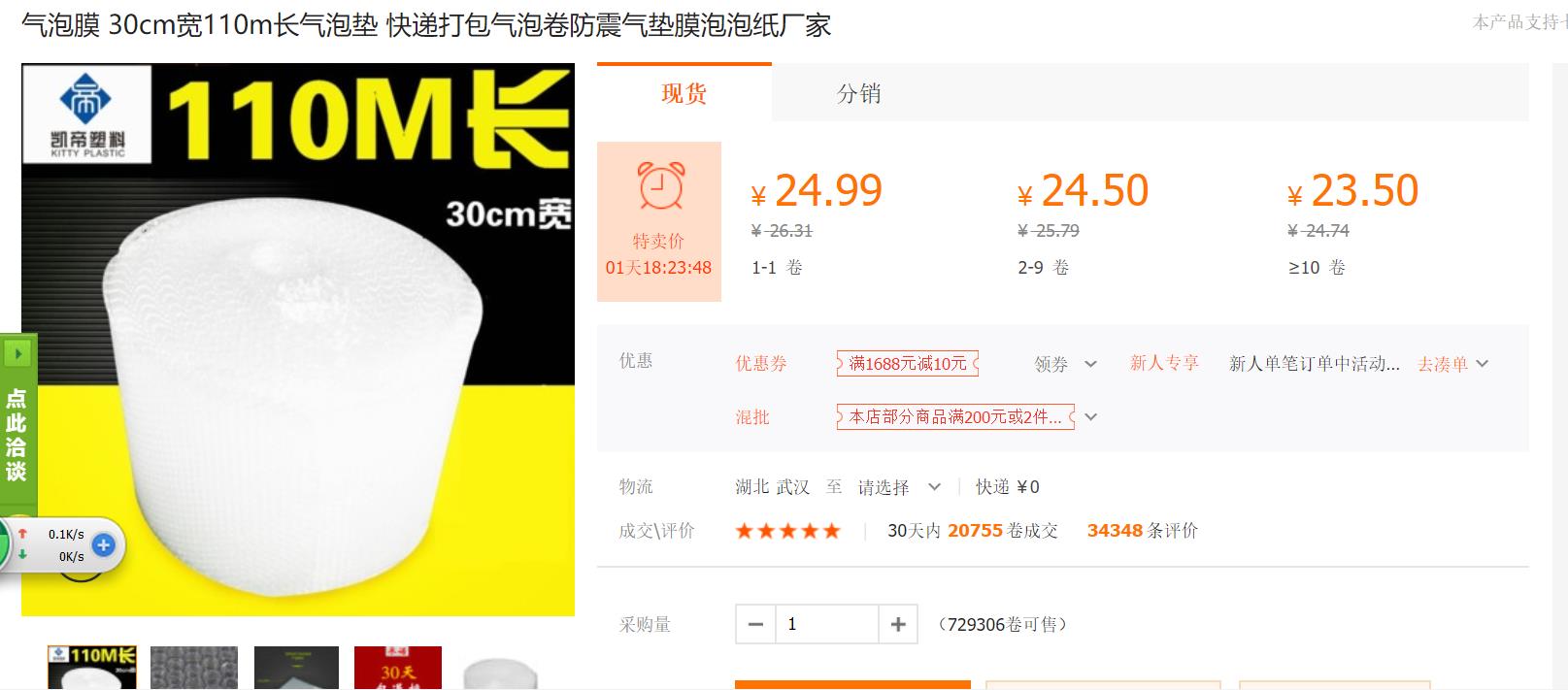- 氣泡膜哪里有賣的?疫情緩解,湖北快遞全面復(fù)工,武漢凱帝恢復(fù)正常發(fā)貨